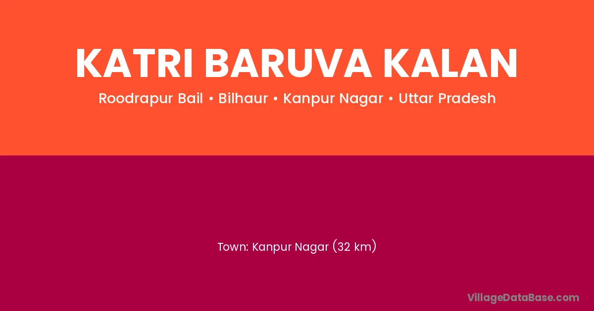 Kanpur Nagar (32 km) is the nearest town to Katri Baruva Kalan village for major economic activities and is located approximately 32 km away.