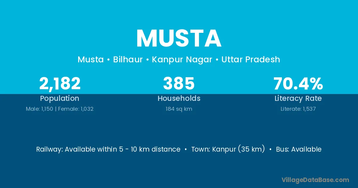Kanpur (35 km) is the nearest town to Musta village for major economic activities and is located approximately 35 km away.