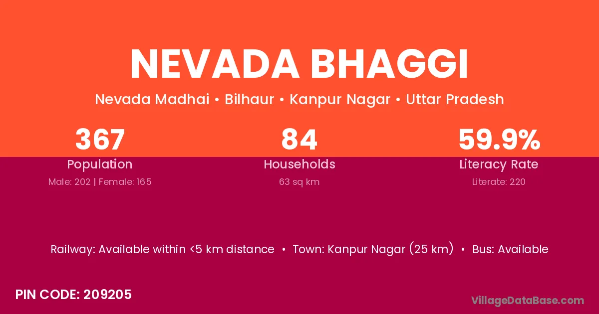 Kanpur Nagar (25 km) is the nearest town to Nevada Bhaggi village for major economic activities and is located approximately 25 km away.