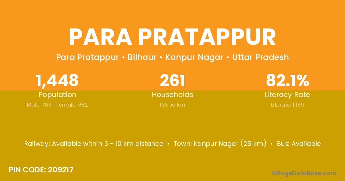 Kanpur Nagar (25 km) is the nearest town to Para Pratappur village for major economic activities and is located approximately 25 km away.