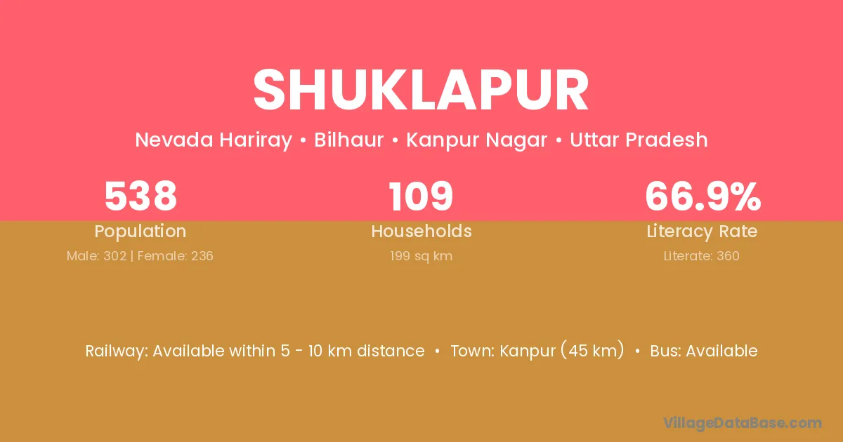 Kanpur (45 km) is the nearest town to Shuklapur village for major economic activities and is located approximately 45 km away.