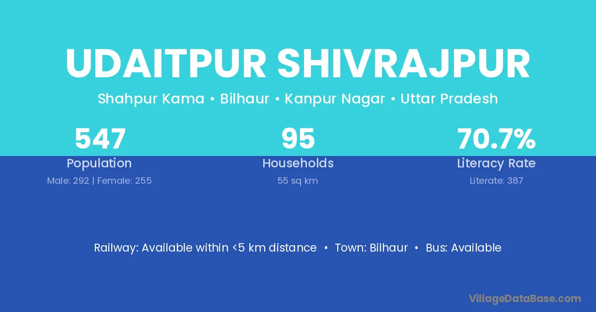 Udaitpur Shivrajpur village has a total population of 547 people, of which 292 are males and 255 are females.