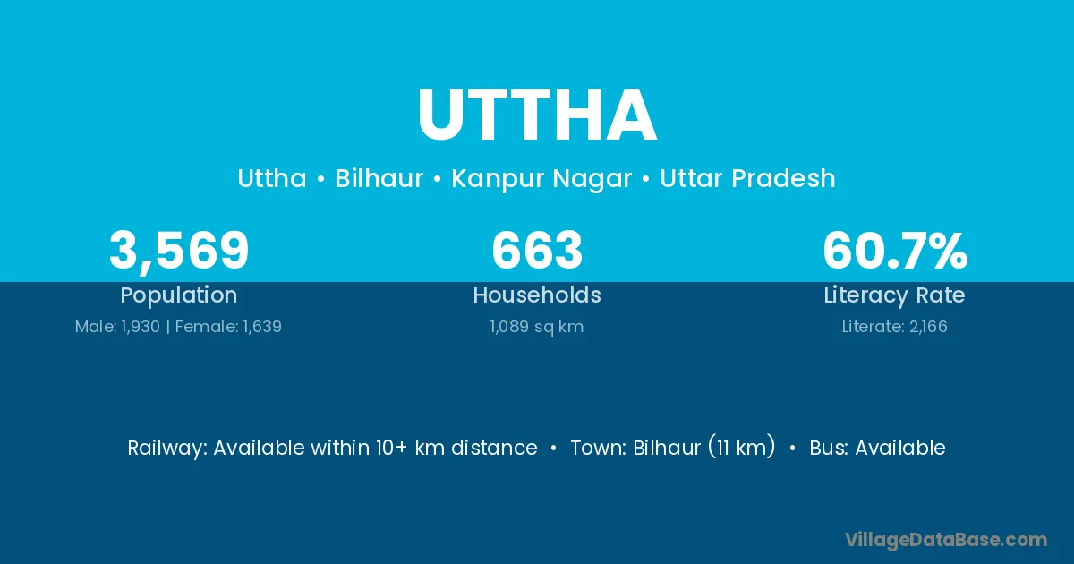 Bilhaur (11 km) is the nearest town to Uttha village for major economic activities and is located approximately 11 km away.