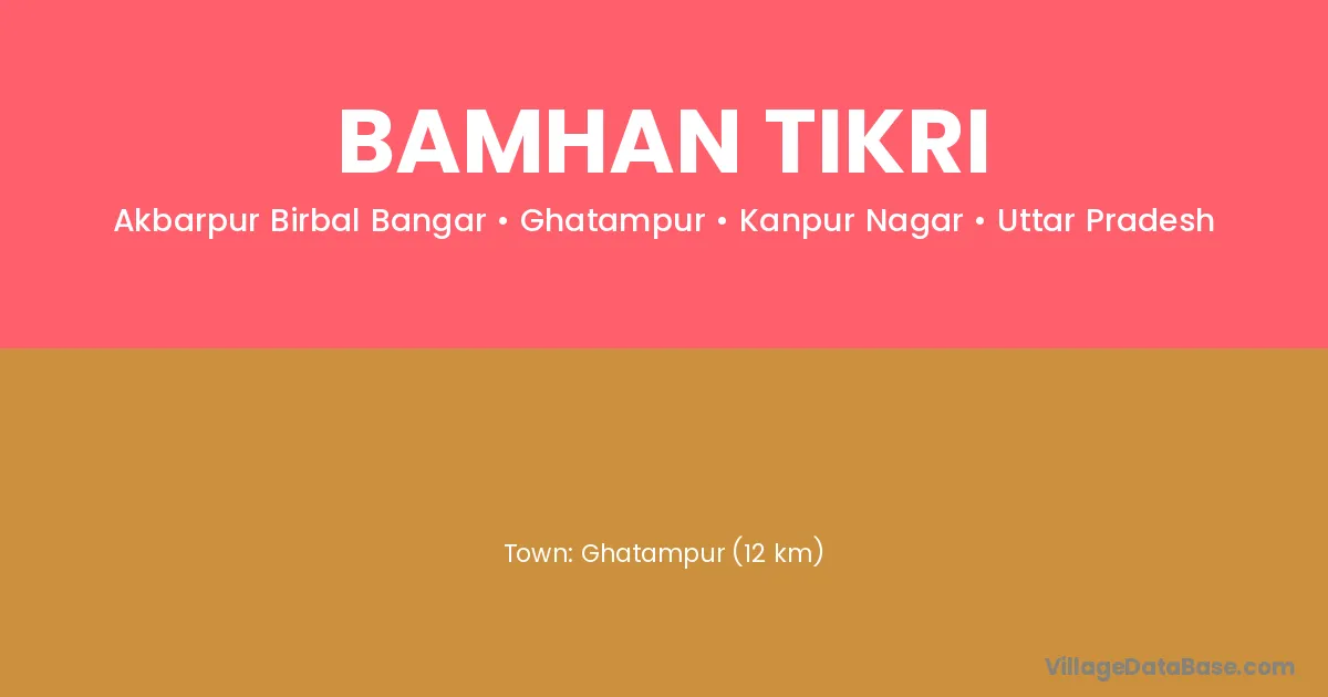 Ghatampur (12 km) is the nearest town to Bamhan Tikri village for major economic activities and is located approximately 12 km away.