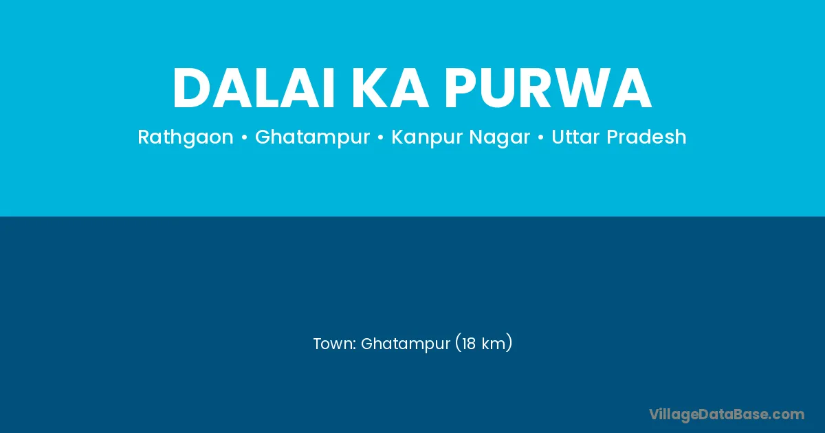 Ghatampur (18 km) is the nearest town to Dalai Ka Purwa village for major economic activities and is located approximately 18 km away.
