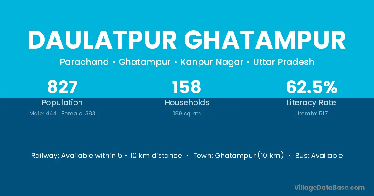 Daulatpur Ghatampur village has a total population of 827 people, of which 444 are males and 383 are females.