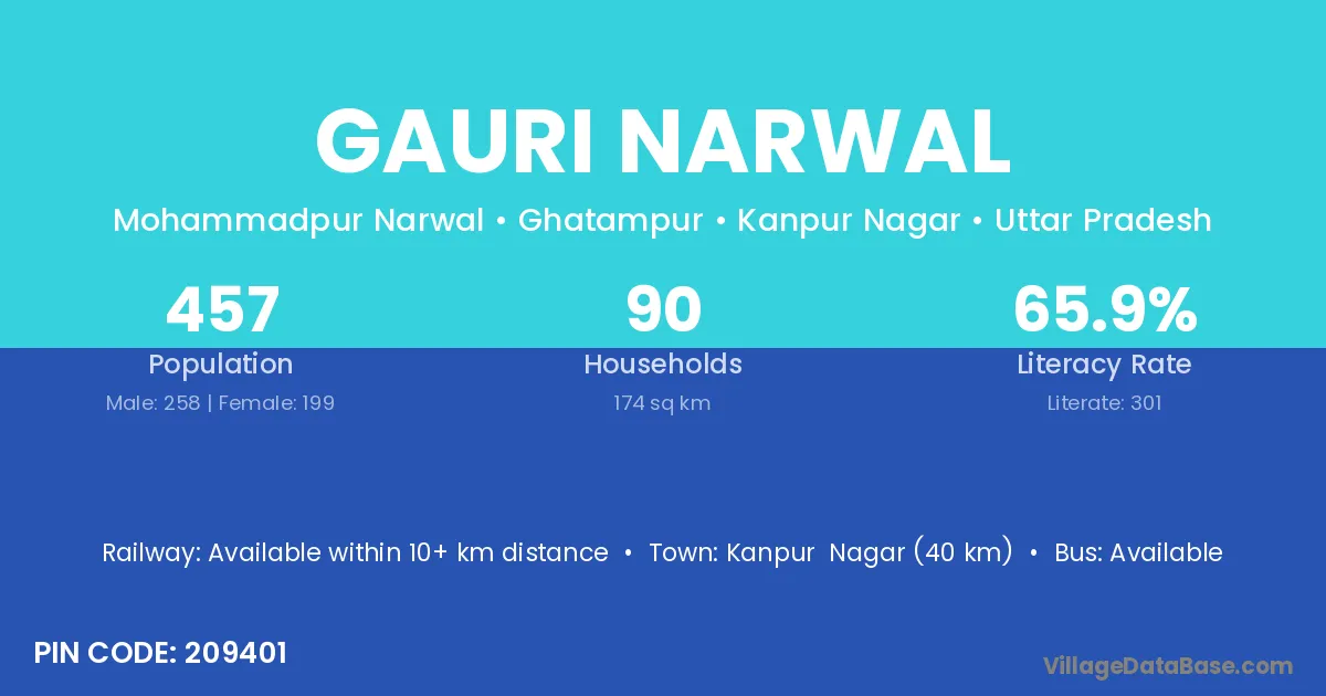 Kanpur Nagar (40 km) is the nearest town to Gauri Narwal village for major economic activities and is located approximately 40 km away.