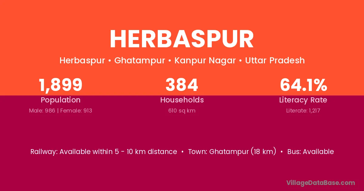 Ghatampur (18 km) is the nearest town to Herbaspur village for major economic activities and is located approximately 18 km away.