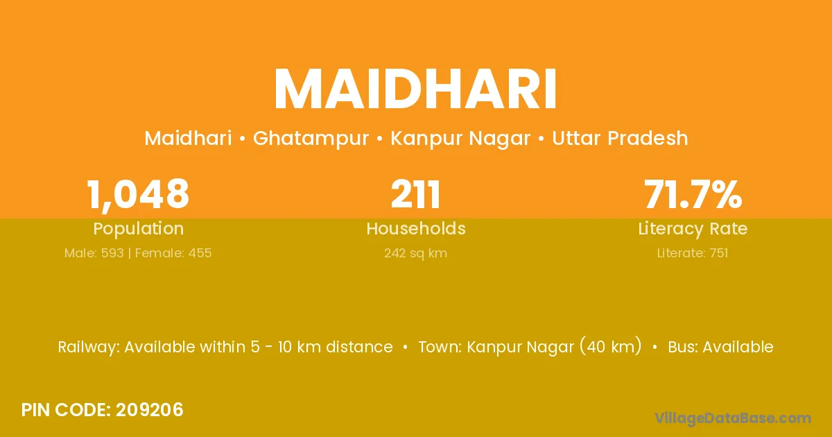 Kanpur Nagar (40 km) is the nearest town to Maidhari village for major economic activities and is located approximately 40 km away.