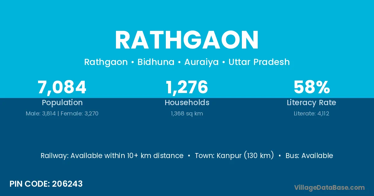 Ghatampur (18 km) is the nearest town to Rathgaon village for major economic activities and is located approximately 18 km away.