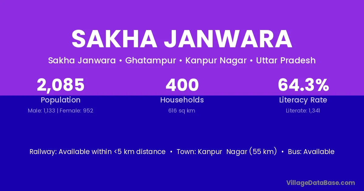 Kanpur Nagar (55 km) is the nearest town to Sakha Janwara village for major economic activities and is located approximately 55 km away.
