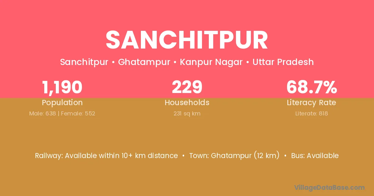 Ghatampur (12 km) is the nearest town to Sanchitpur village for major economic activities and is located approximately 12 km away.