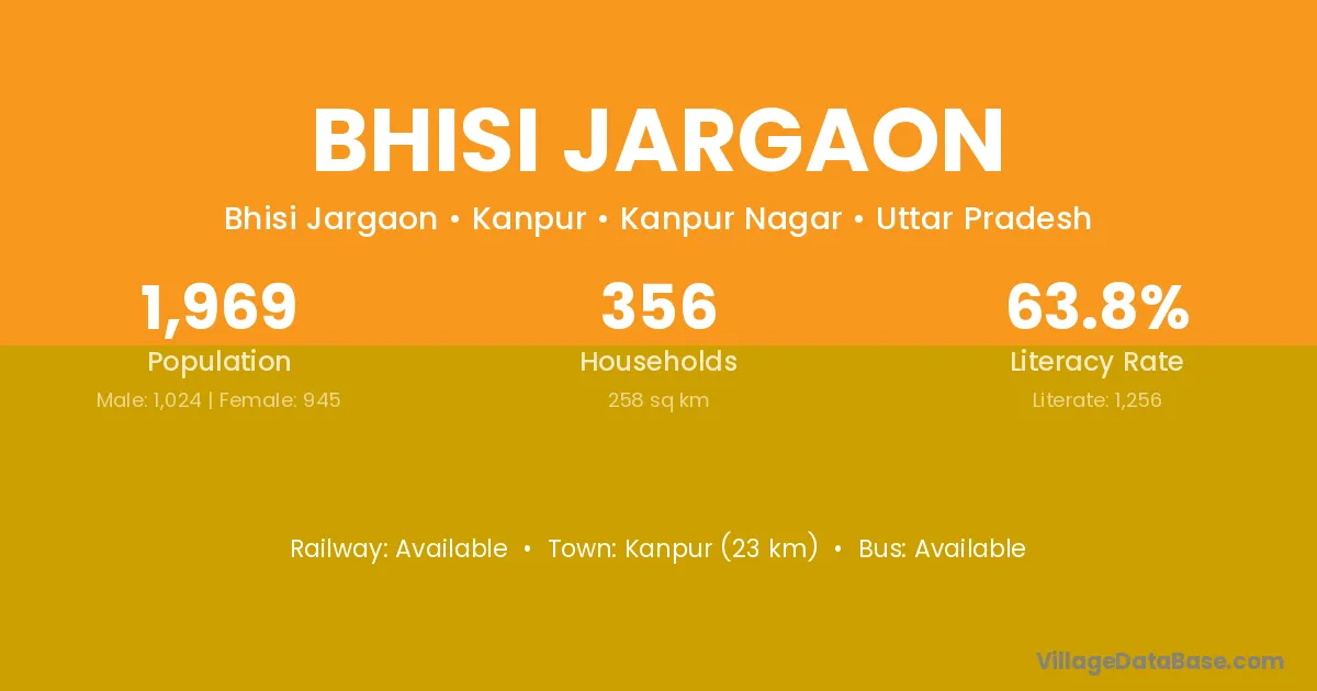 Kanpur (23 km) is the nearest town to Bhisi Jargaon village for major economic activities and is located approximately 23 km away.