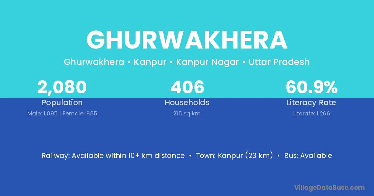Kanpur (23 km) is the nearest town to Ghurwakhera village for major economic activities and is located approximately 23 km away.