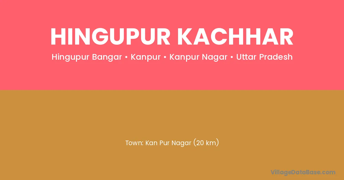 Kan Pur Nagar (20 km) is the nearest town to Hingupur Kachhar village for major economic activities and is located approximately 20 km away.