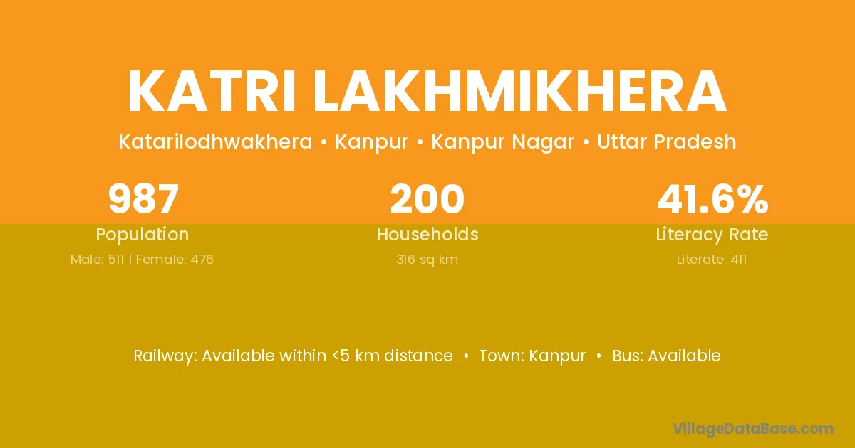 Katri Lakhmikhera village has a total population of 987 people, of which 511 are males and 476 are females.