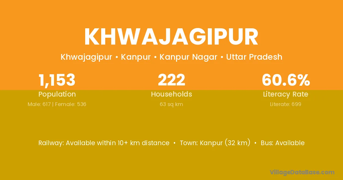 Kanpur (32 km) is the nearest town to Khwajagipur village for major economic activities and is located approximately 32 km away.