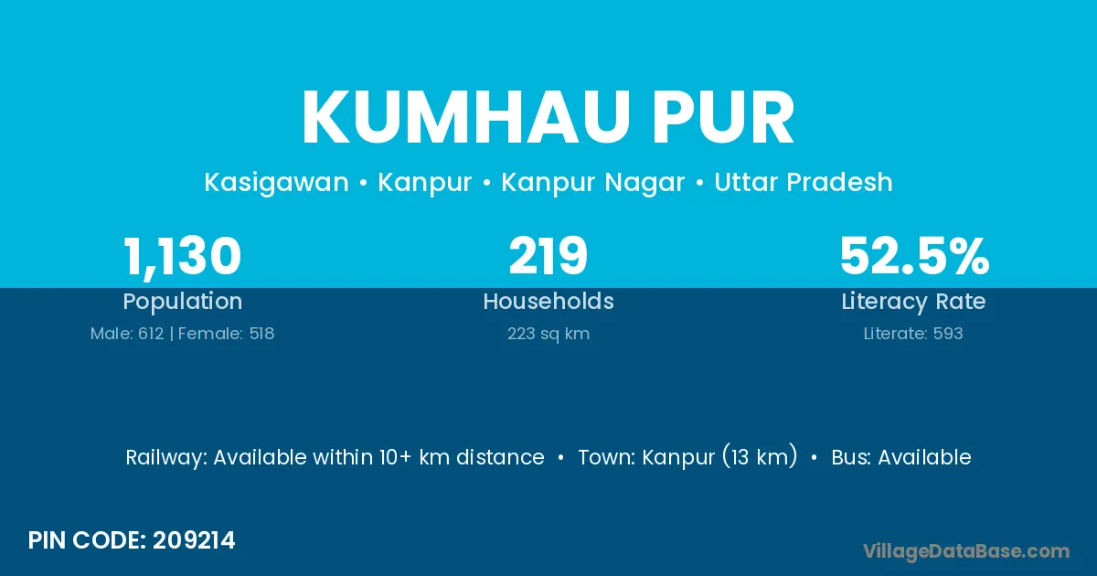 Kanpur (13 km) is the nearest town to Kumhau Pur village for major economic activities and is located approximately 13 km away.
