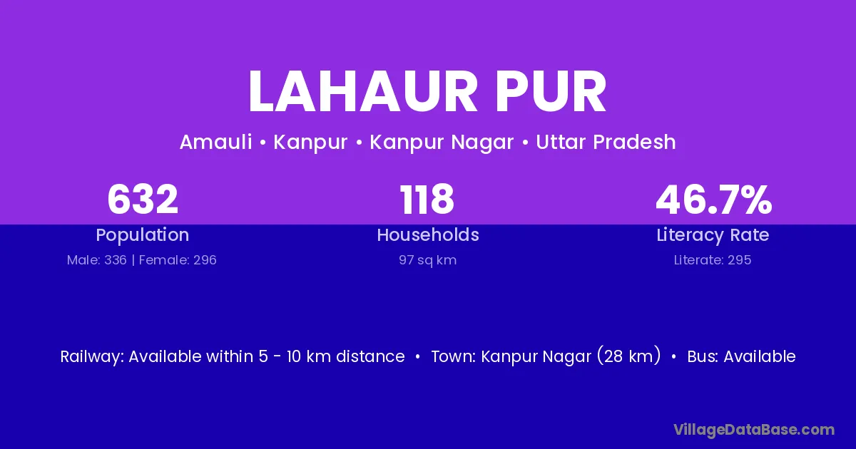 Kanpur Nagar (28 km) is the nearest town to Lahaur Pur village for major economic activities and is located approximately 28 km away.