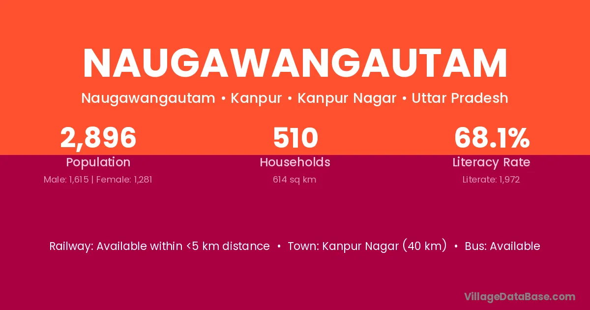 Kanpur Nagar (40 km) is the nearest town to Naugawangautam village for major economic activities and is located approximately 40 km away.