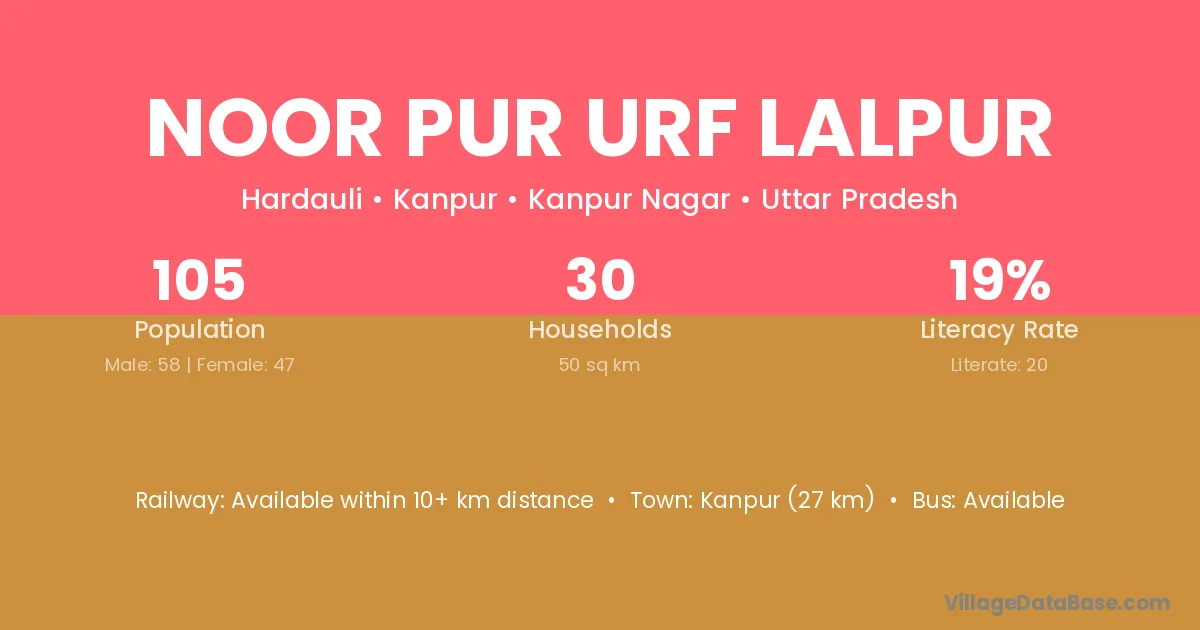 Noor Pur Urf Lalpur village has a total population of 105 people, of which 58 are males and 47 are females.