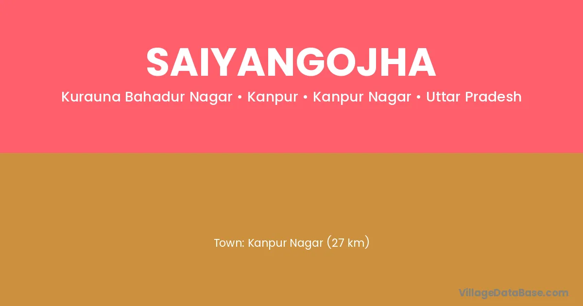 Kanpur Nagar (27 km) is the nearest town to Saiyangojha village for major economic activities and is located approximately 27 km away.