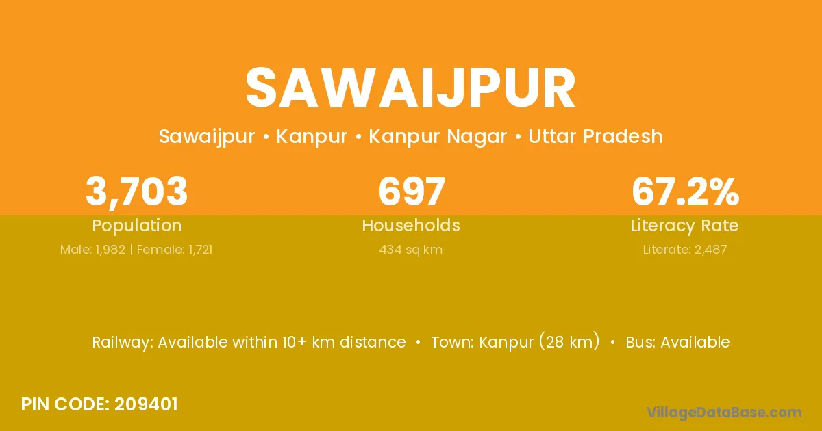 Kanpur (28 km) is the nearest town to Sawaijpur village for major economic activities and is located approximately 28 km away.