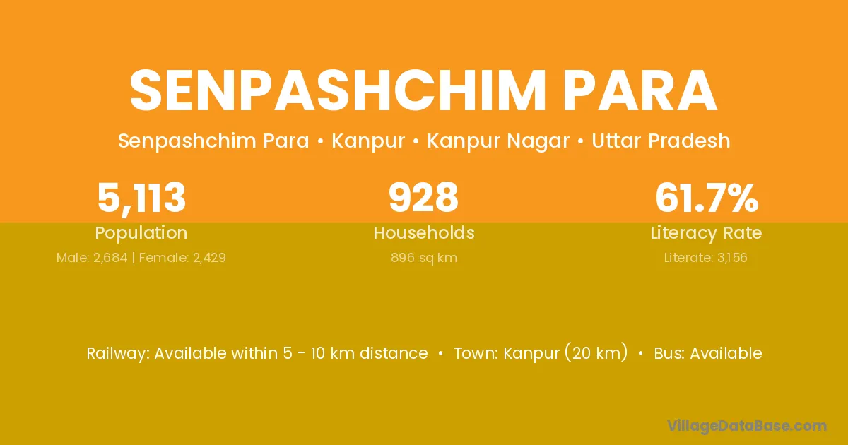 Kanpur (20 km) is the nearest town to Senpashchim Para village for major economic activities and is located approximately 20 km away.