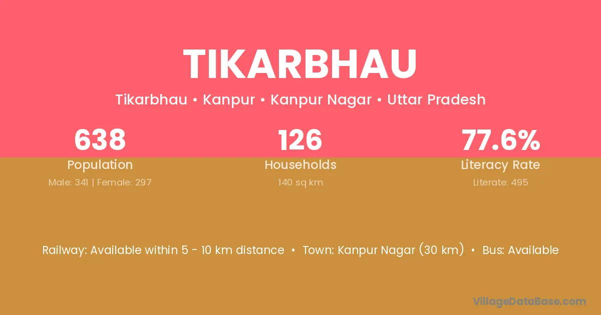 Kanpur Nagar (30 km) is the nearest town to Tikarbhau village for major economic activities and is located approximately 30 km away.