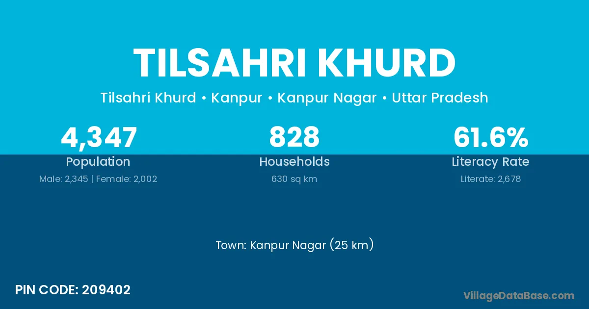 Kanpur Nagar (25 km) is the nearest town to Tilsahri Khurd village for major economic activities and is located approximately 25 km away.