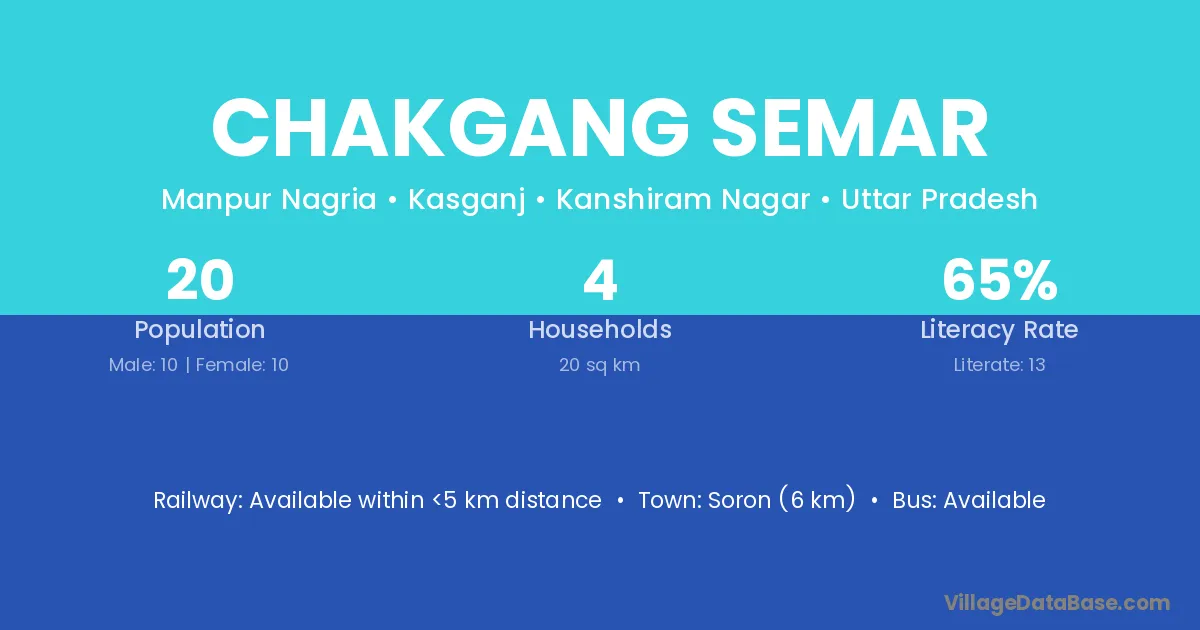Soron (6 km) is the nearest town to Chakgang Semar village for major economic activities and is located approximately 6 km away.