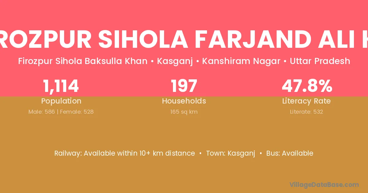 Firozpur Sihola Farjand Ali Kh village has a total population of 1,114 people, of which 586 are males and 528 are females.