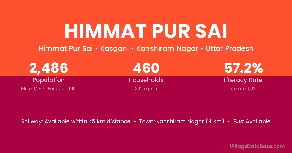 Kanshiram Nagar (4 km) is the nearest town to Himmat Pur Sai village for major economic activities and is located approximately 4 km away.