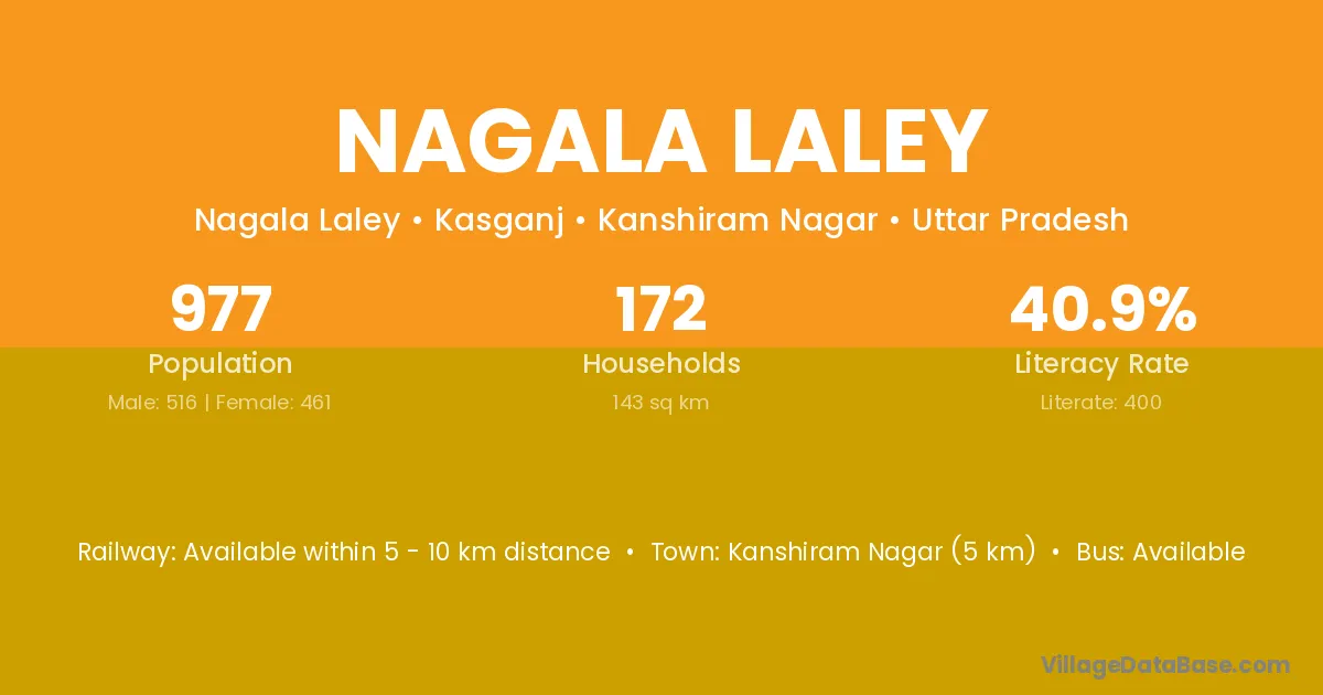 Kanshiram Nagar (5 km) is the nearest town to Nagala Laley village for major economic activities and is located approximately 5 km away.