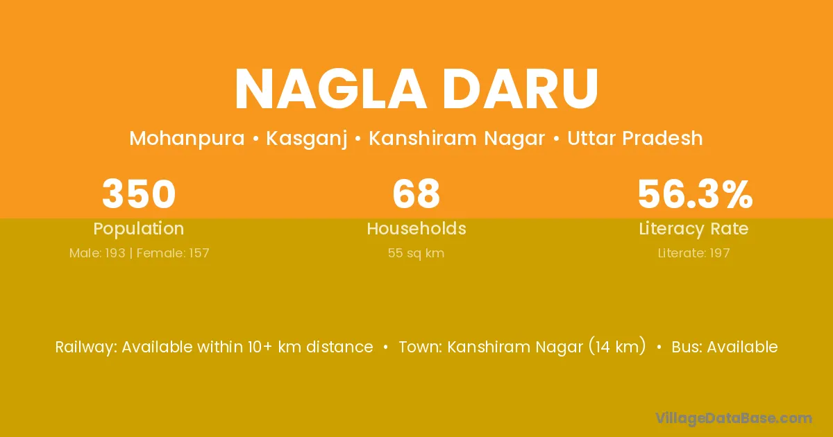 Nagla Daru village has a total population of 350 people, of which 193 are males and 157 are females.