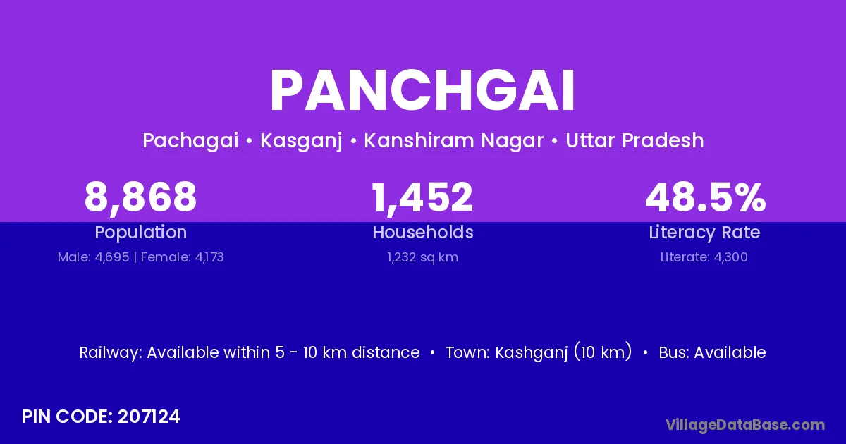 Kashganj (10 km) is the nearest town to Panchgai village for major economic activities and is located approximately 10 km away.