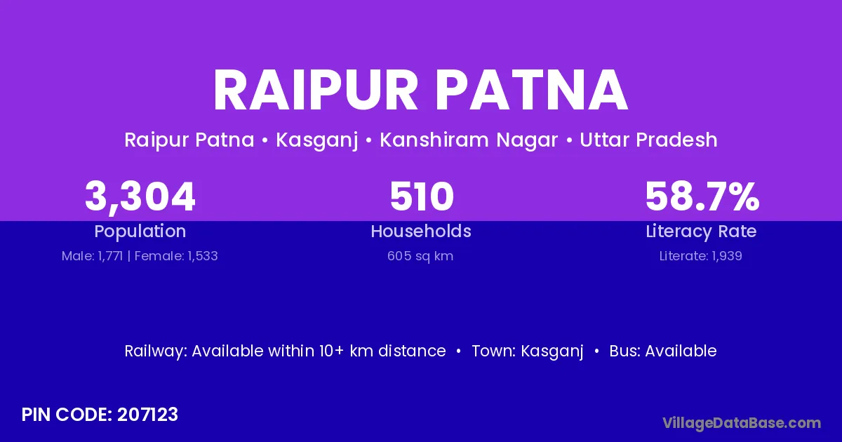 Kasganj is the nearest town to Raipur Patna village for major economic activities