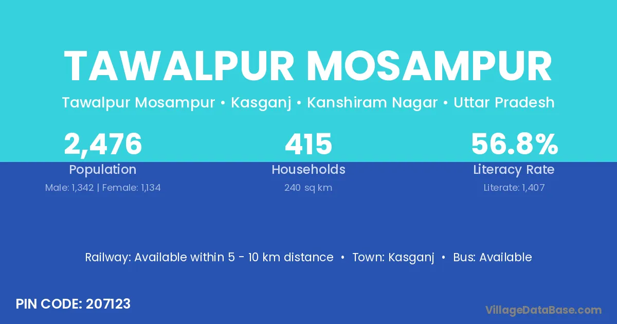 Kasganj is the nearest town to Tawalpur Mosampur village for major economic activities