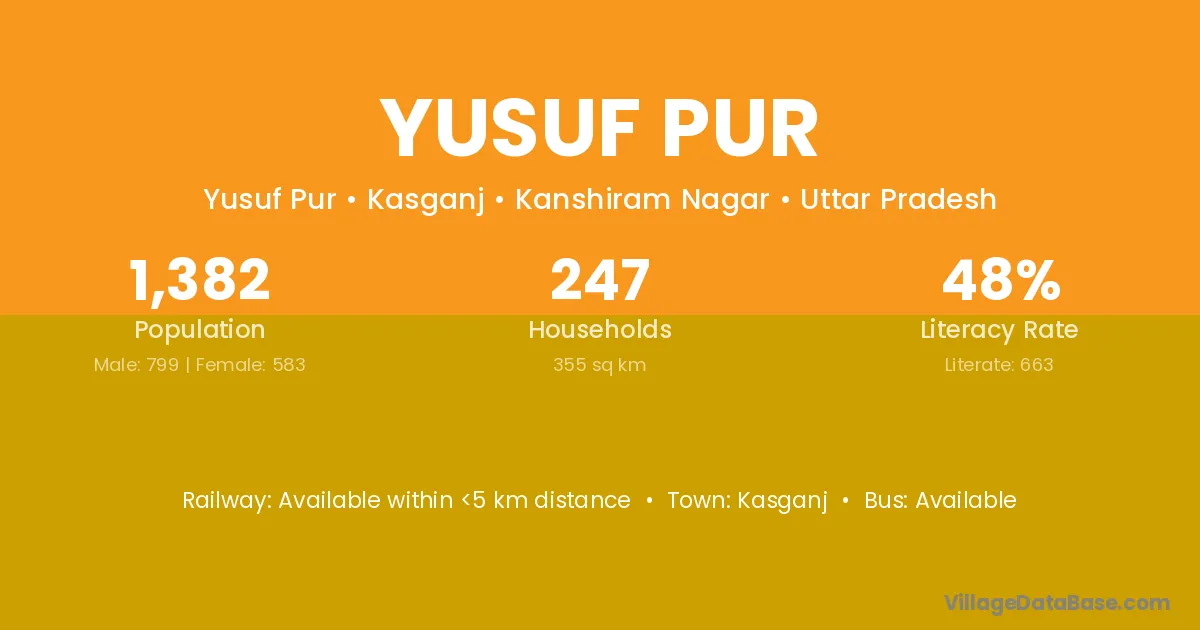 Kasganj is the nearest town to Yusuf Pur village for major economic activities