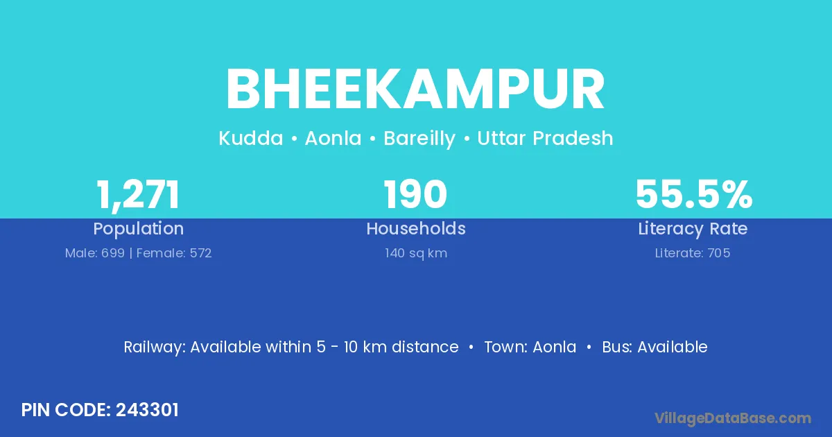Bheekampur village has a total population of 2,781 people, of which 1,479 are males and 1,302 are females.