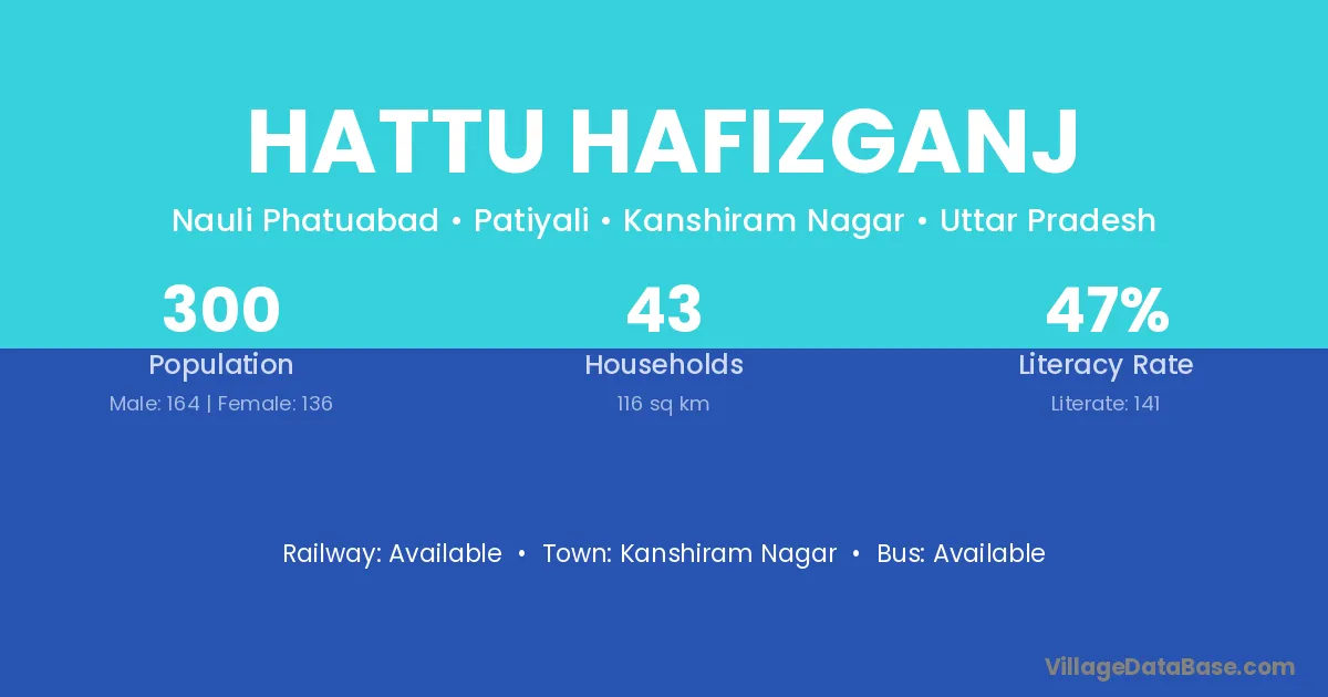 Hattu Hafizganj village has a total population of 300 people, of which 164 are males and 136 are females.