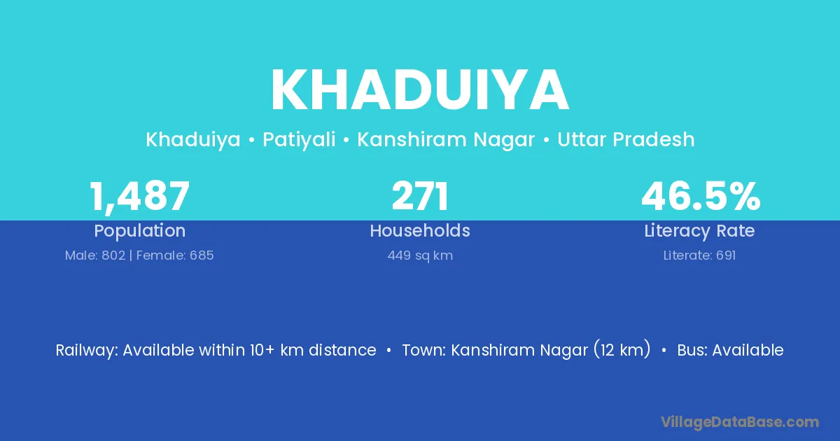 Kanshiram Nagar (12 km) is the nearest town to Khaduiya village for major economic activities and is located approximately 12 km away.