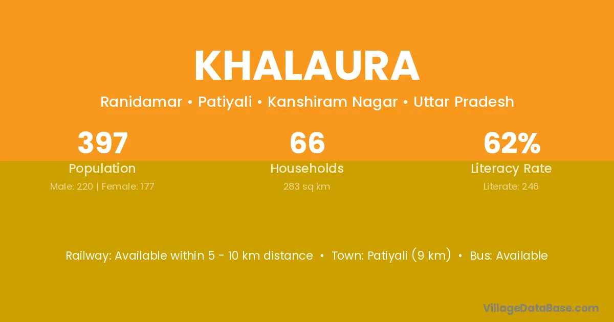Patiyali (9 km) is the nearest town to Khalaura village for major economic activities and is located approximately 9 km away.