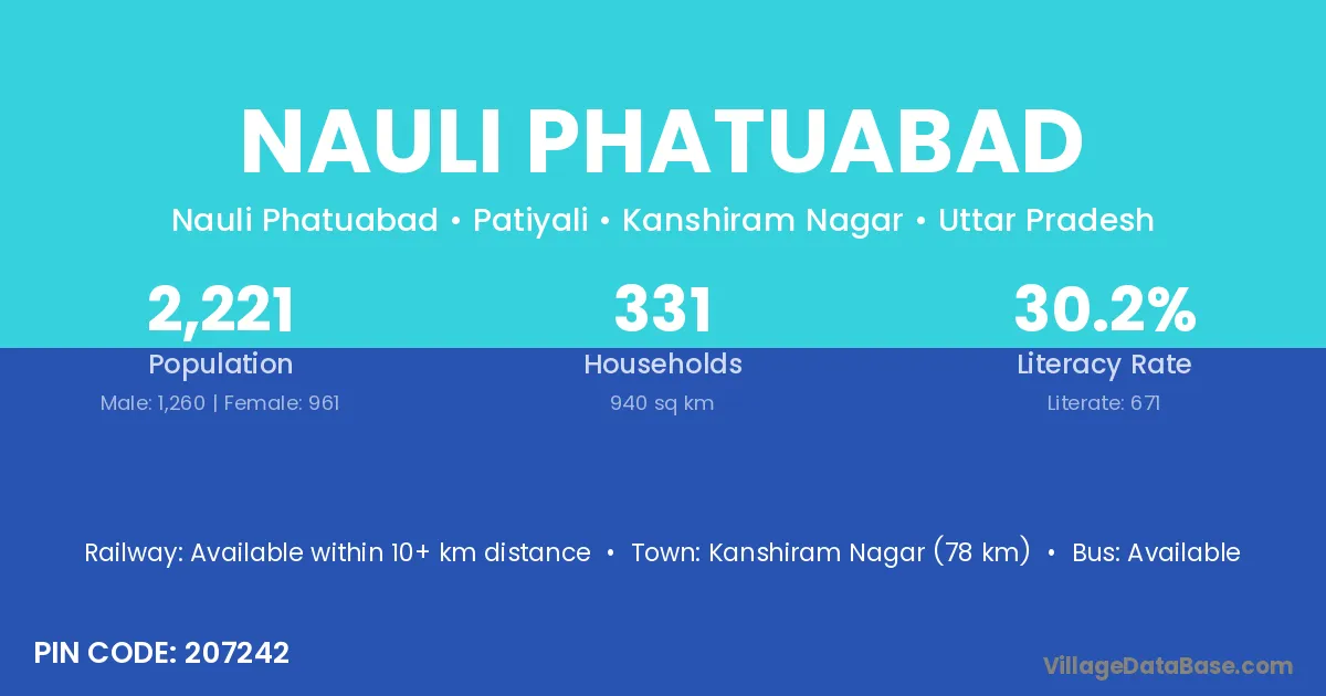 Kanshiram Nagar (78 km) is the nearest town to Nauli Phatuabad village for major economic activities and is located approximately 78 km away.