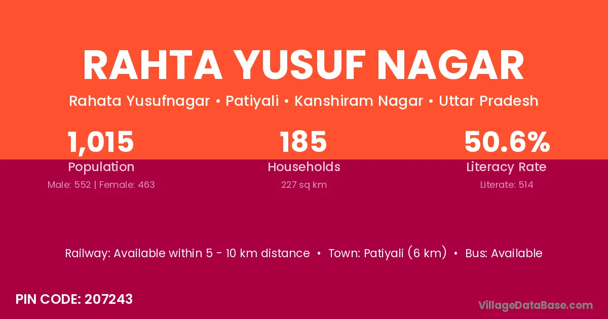 There are approximately 185 households in Rahta Yusuf Nagar village.