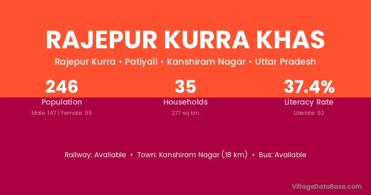 Kanshiram Nagar (18 km) is the nearest town to Rajepur Kurra Khas village for major economic activities and is located approximately 18 km away.