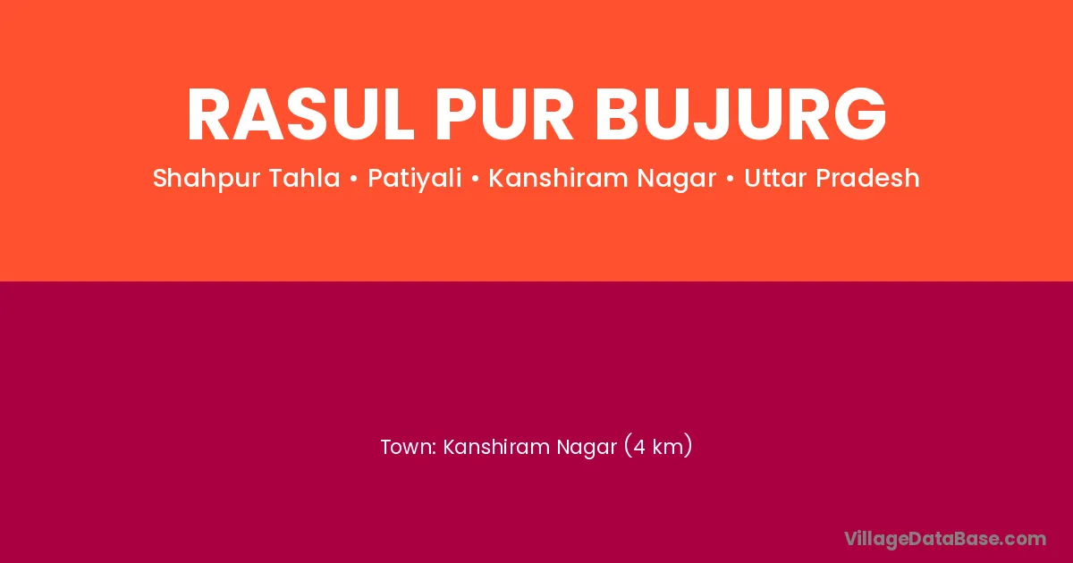 Kanshiram Nagar (4 km) is the nearest town to Rasul Pur Bujurg village for major economic activities and is located approximately 4 km away.