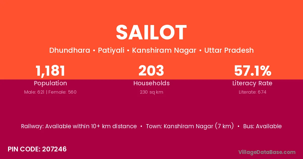 Kanshiram Nagar (7 km) is the nearest town to Sailot village for major economic activities and is located approximately 7 km away.
