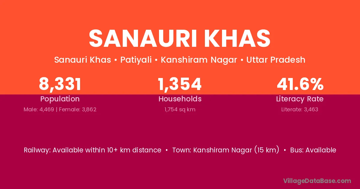 Kanshiram Nagar (15 km) is the nearest town to Sanauri Khas village for major economic activities and is located approximately 15 km away.