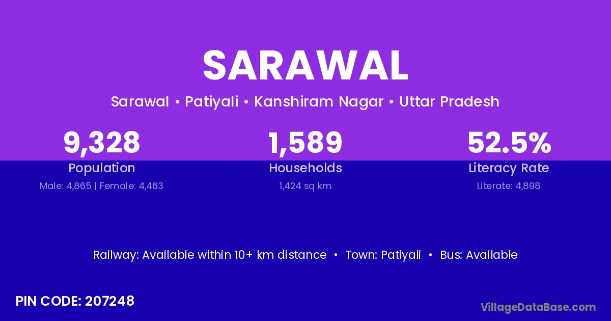Patiyali is the nearest town to Sarawal village for major economic activities